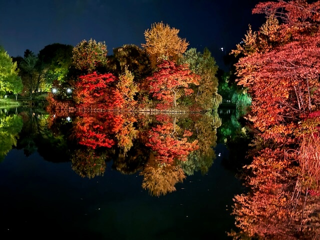 中島公園の紅葉ライトアップへ