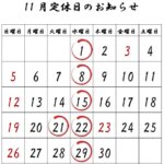 11月定休日のお知らせ! 2023年11月2日 カテゴリー: お知らせ 店主のくるぽんです。11月2日の木曜日です。 気がつけば11月、早いな~。11月の定休日、21日(火)もお休み頂きます。うっかり21日の予約を取ってしまい、すぐ気がついたので折り返し電話をしてキャンセルして頂きましたが、 […]