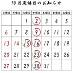 本日満席! 2024年10月7日 カテゴリー: お知らせ 店主のくるぽんです。10月7日の月曜日です。 先月滋賀で購入した手ぬぐいを飾りました。栗から紅葉へ。 【本日のご予約状況】本日、満席です。(12時 時点の情報です。)※17時~19時までの時間制限付きで宜しければ2名様の […]