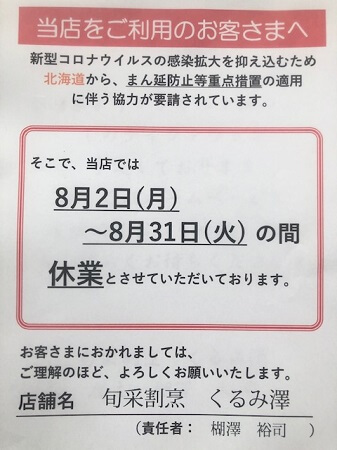 店主のくるぽんです。8月6日の金曜日です。 今日も朝から外は暑く、寝苦しい夜になりそうですね。店内は涼しく仕込みがはかどりました(笑)自粛自粛も暇すぎて疲れたので、期間限定テイクアウトを8日の日曜日から始めます!久し振り […]