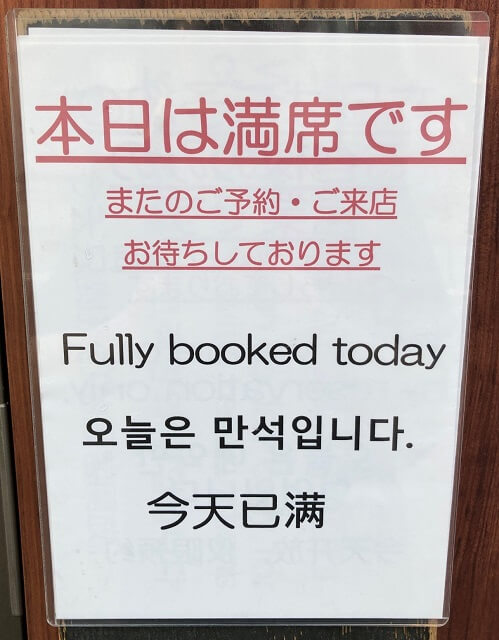 本日、ご予約なしのお客様はお断りさせて頂きます。