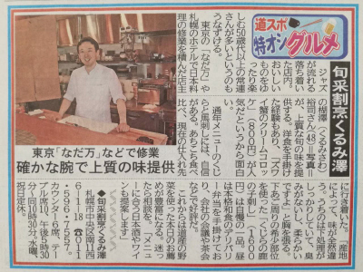 本日の道新スポーツに当店が掲載されています。