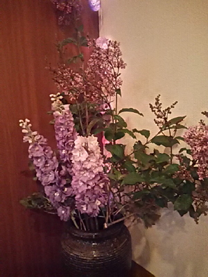 今週のお花は、紫色が綺麗なライラックとデルフィニュームです。