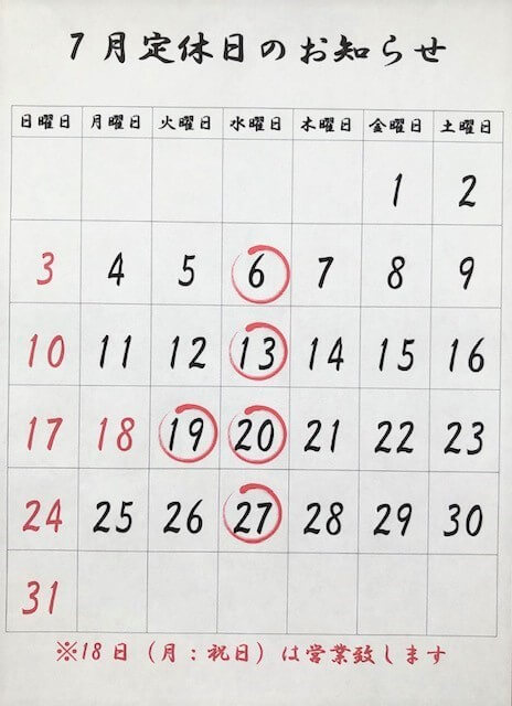 昨日はブログの「7月定休日のお知らせ&BYOについて」を