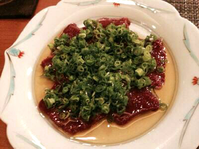 牛のレバ刺しに近い食感で、つるりとした舌触りと噛みごたえ。