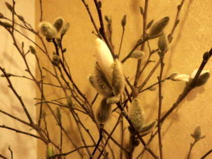 今週の店内の花は、ひめこぶしの花です。